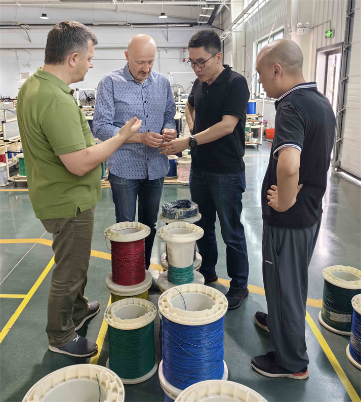 考察團一行先后參觀了線束生產(chǎn)車間和導(dǎo)線生產(chǎn)車間,在參觀過程中,劉忠明為客戶詳細介紹了創(chuàng)大線束各項生產(chǎn)工藝流程、質(zhì)量控制、研發(fā)創(chuàng)新等情況。參觀結(jié)束后,考察團對我公司的廠區(qū)環(huán)境、生產(chǎn)能力、工藝水平、設(shè)施設(shè)備等各方面表示充分的肯定。